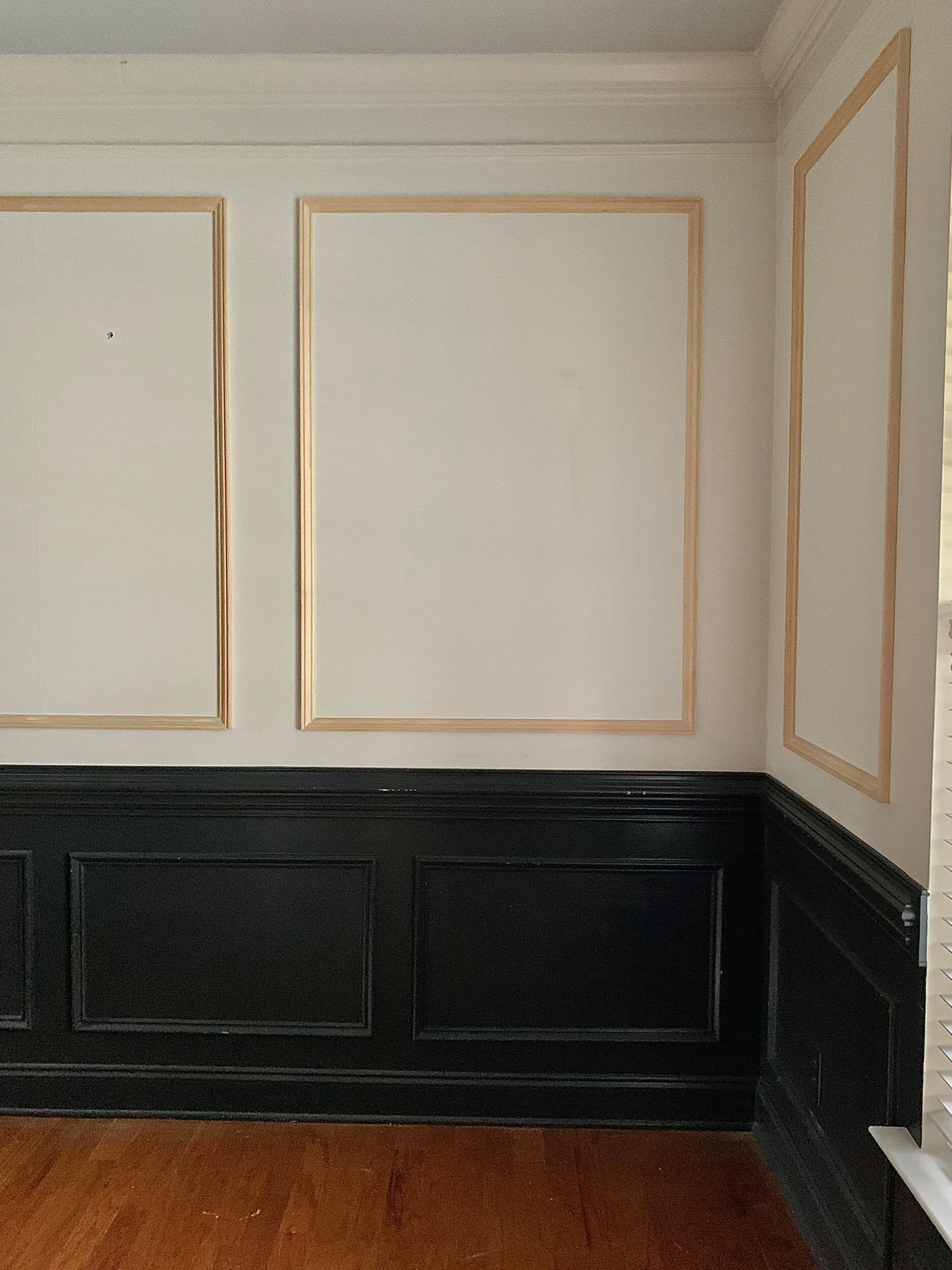 What this photo doesn’t show is that we had to run to 6 Lowes stores for molding - 3 in Charlotte and 3 in Raleigh. Theie inventory counting was wrong at all of them. This pushed the project from 1 day to 2 days. Eric from Est.2019 Workshop had the patience of a saint and a great attitude! I do think we bought the last of the stock of these moldings in North Carolina.
