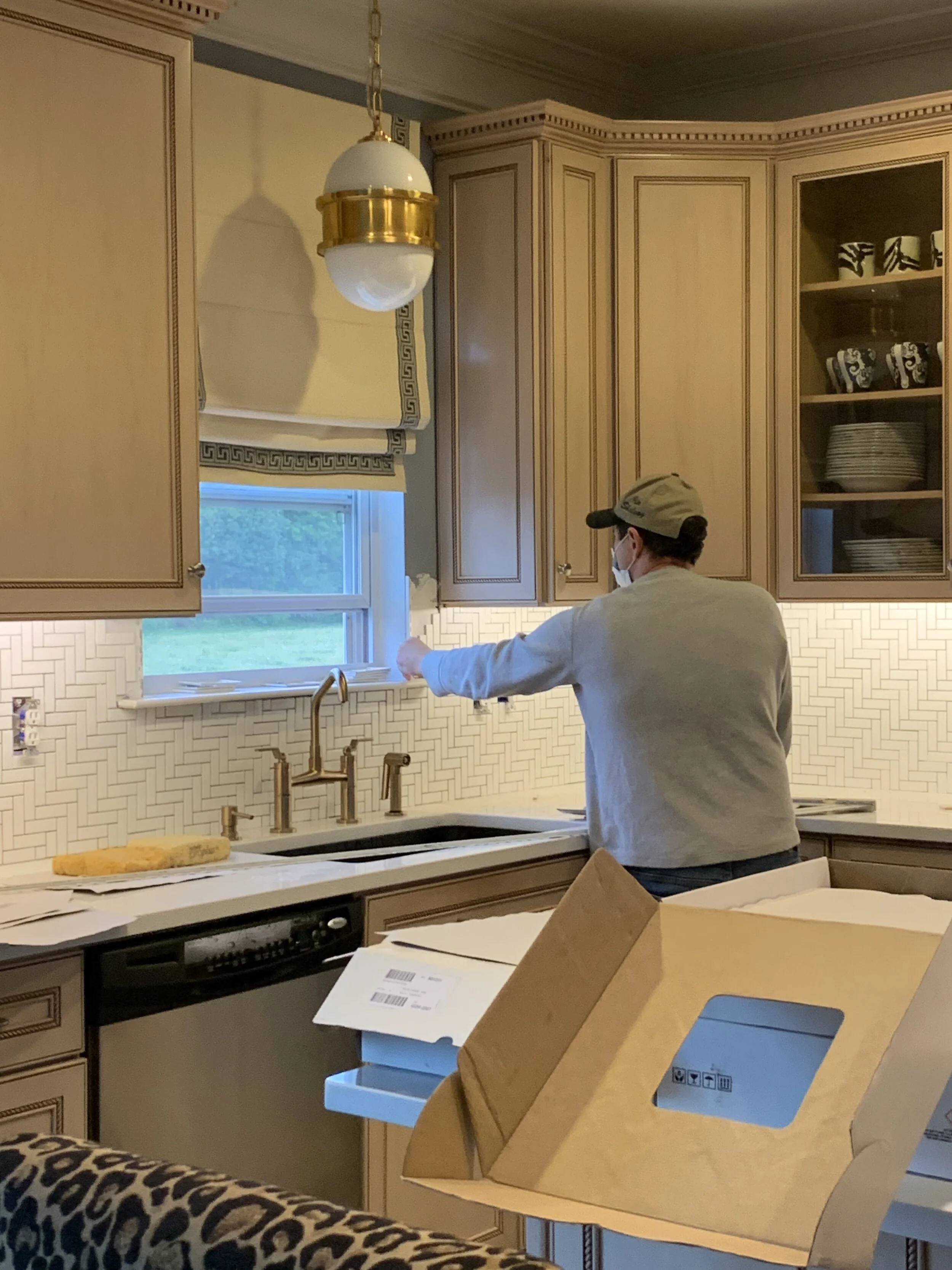 If you’ve been following me on Instagram you know that my countertops have been installed, Everest Quartz. They have a light gray veining with a crisp clean look. It took them no time to remove and install after my template appointment. My tile from the Tile Shop has also been installed. I wanted something clean, modern and classic. For the grout I’m went with whisper gray, just enough to highlight the tile without being distracting.