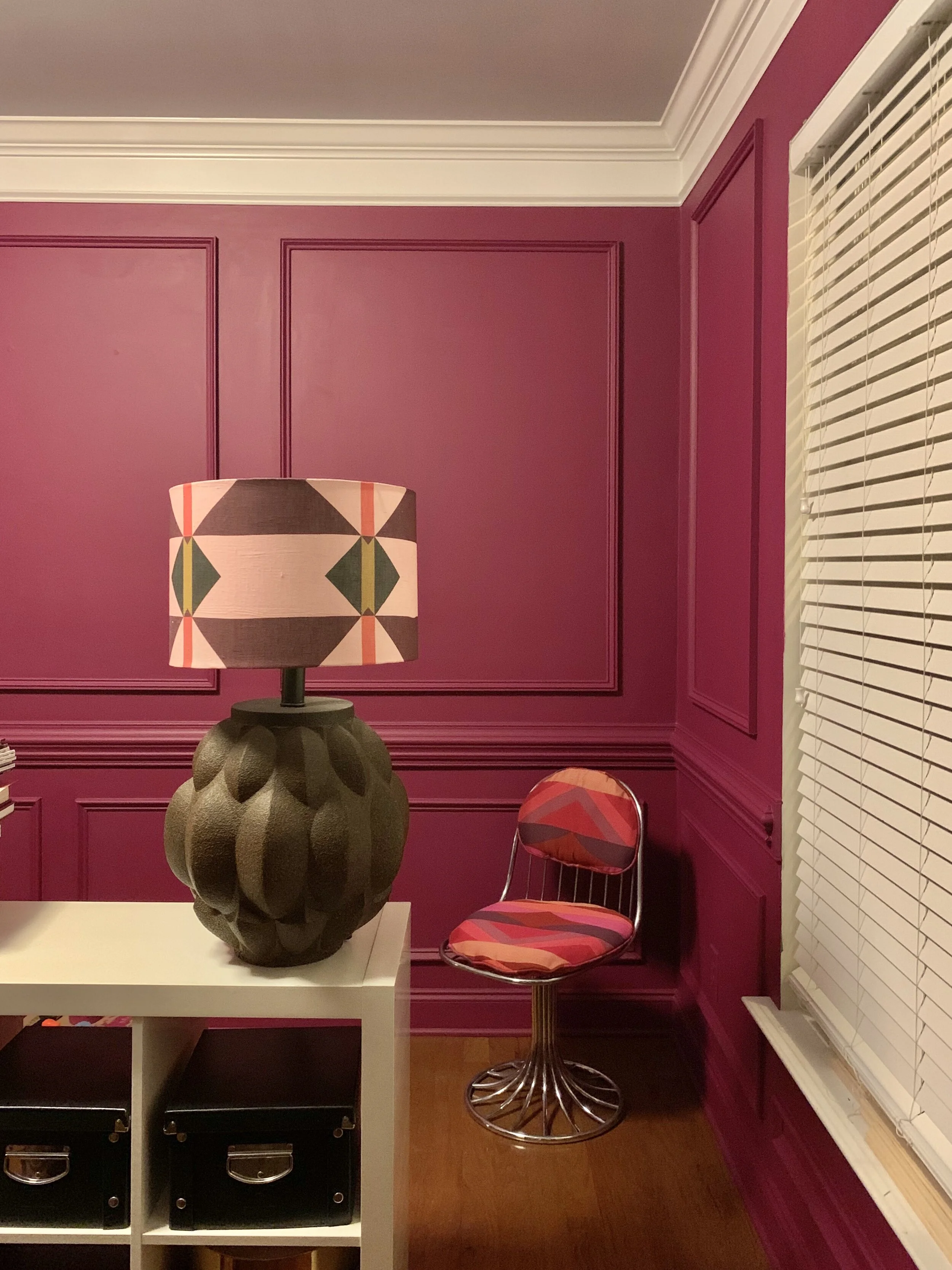 So what prompted me to start painting? Two things, first having the moldings installed made me want to see the paint on the walls pronto. Second, I received notification that my Ballard Design custom banquette shipped! It was scheduled to be shipping in January so this was quite the wonderful surprise. Additionally, my rug will arrive around the same time as the banquette so I wanted the room to be ready to receive both. Honestly I thought I had time and that this room would be dragged out until the first of year - but not anymore!