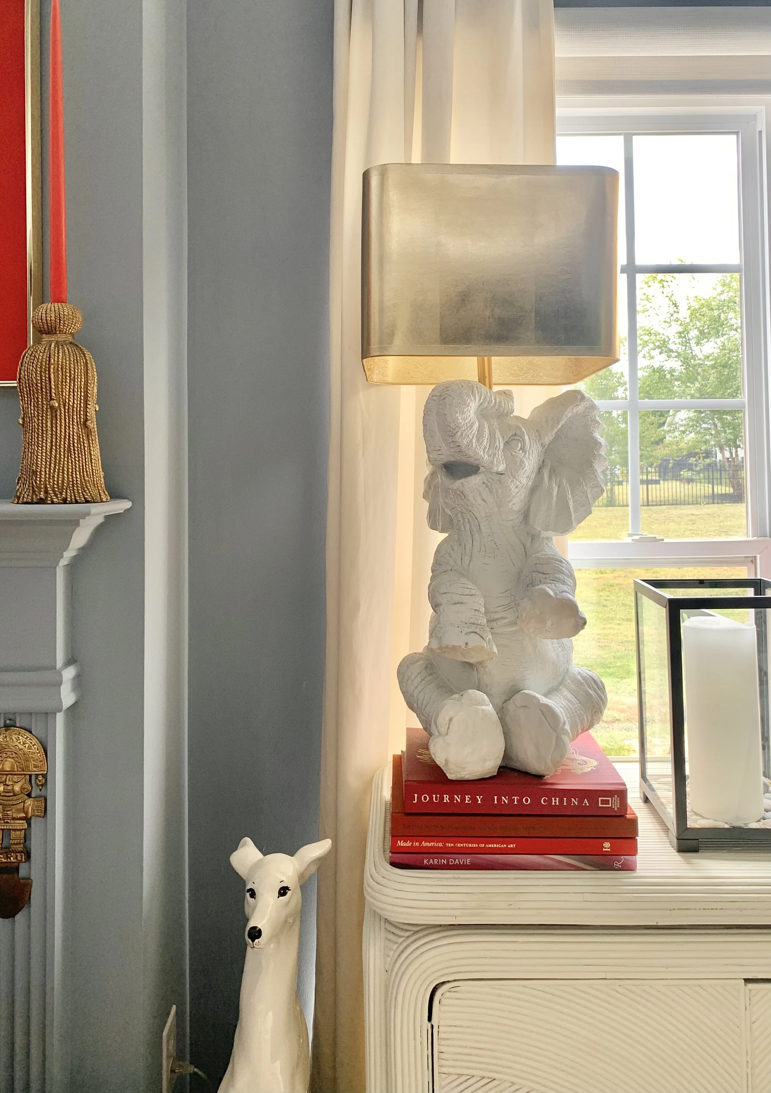 For the family room update, I just received our Gold Foil Lamps Shades from ORC sponsor Couture Lamps! They perfectly tie in all the brass elements in the kitchen and dining room. They also mimic our brass coffee table.